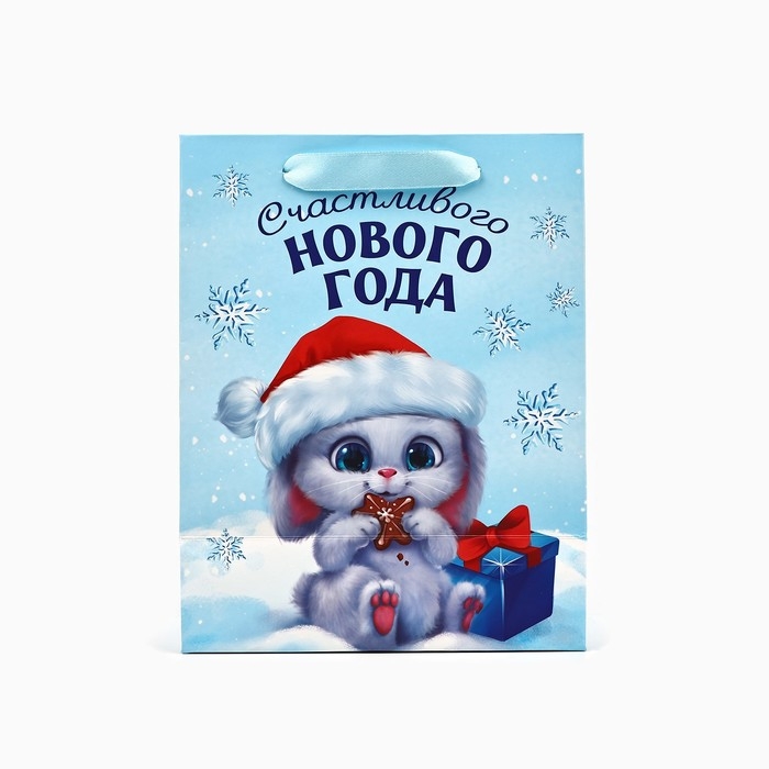 Пакет подарочный новогодний ламинированный «Счастливого Нового года», заяц, MS 18 х 23 х 10 см , Новый год