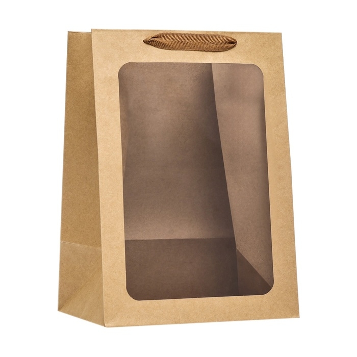 Пакет подарочный, с окном, 35 х 25 х 18 см, крафт