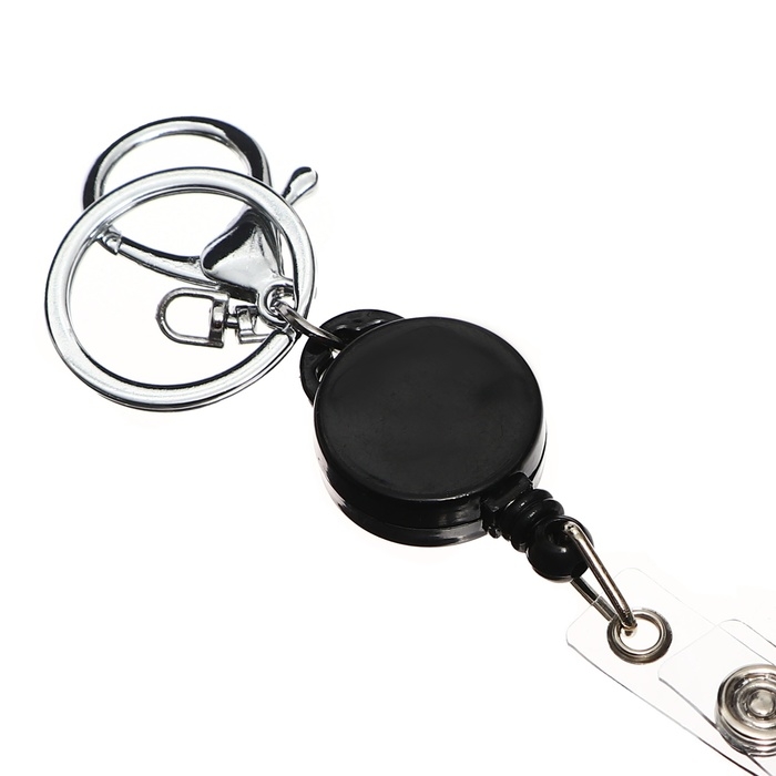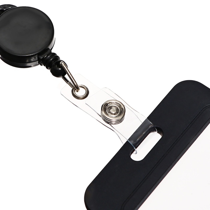 Карабин для бейджа, с держателем-рулеткой, на кнопке, чёрный