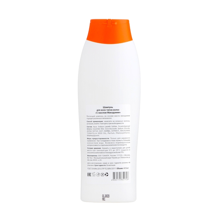 Шампунь для всех типов волос с маслом Макадамии, 400 мл