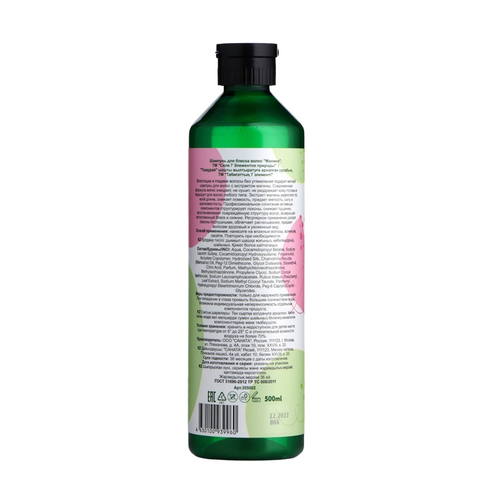 Шампунь для блеска волос "Малина", ТМ "Сила 7 Элементов природы", 500 мл