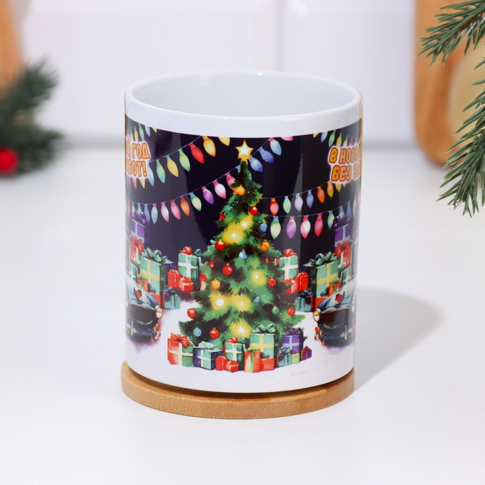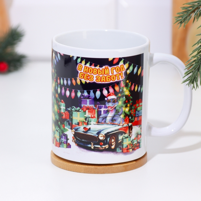 Кружка новогодняя, сублимация "В Новый Год без забот!" символ года, автомобиль, 320 мл