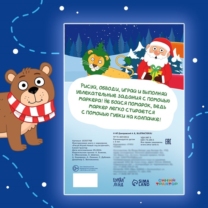 Многоразовая книга с маркерами "Рисуй.Играй.Новый год встречай!", Синий трактор