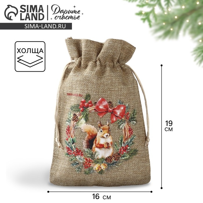 Мешок подарочный с термонаклейкой «Новогодний венок», 16 х 24 см , Новый год