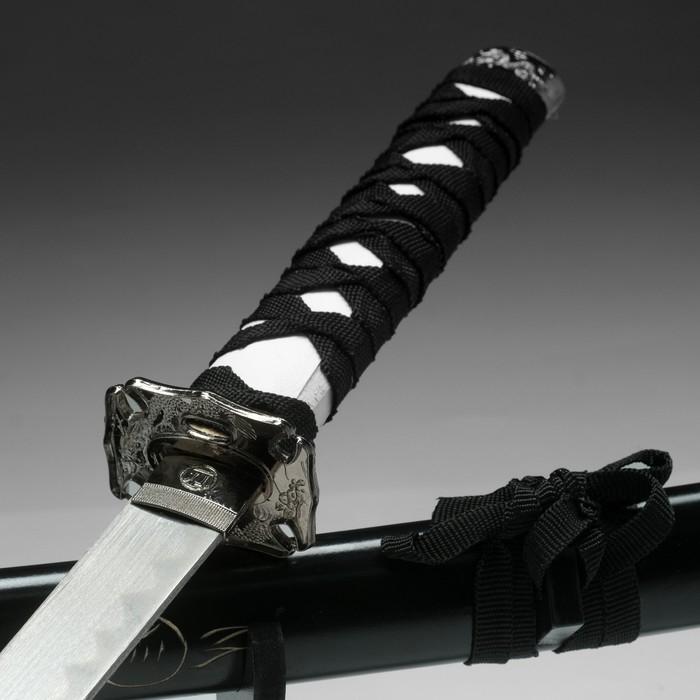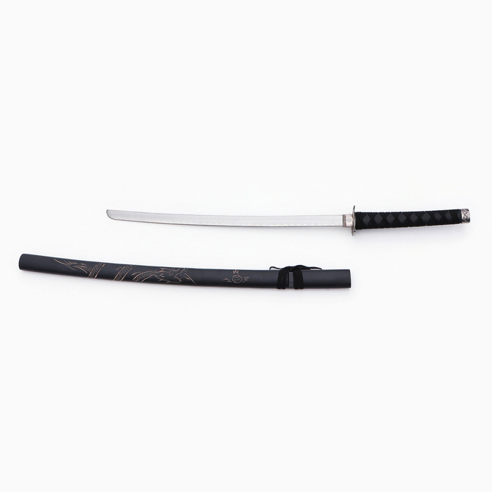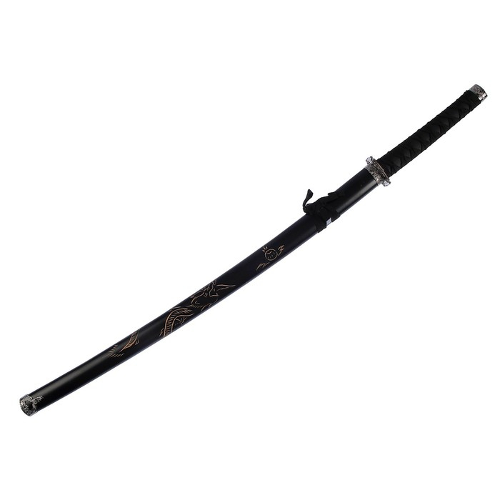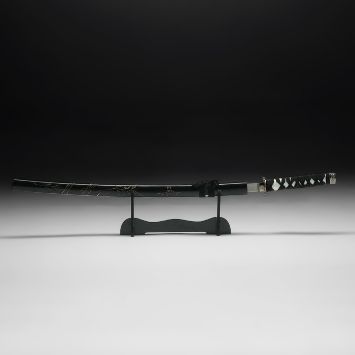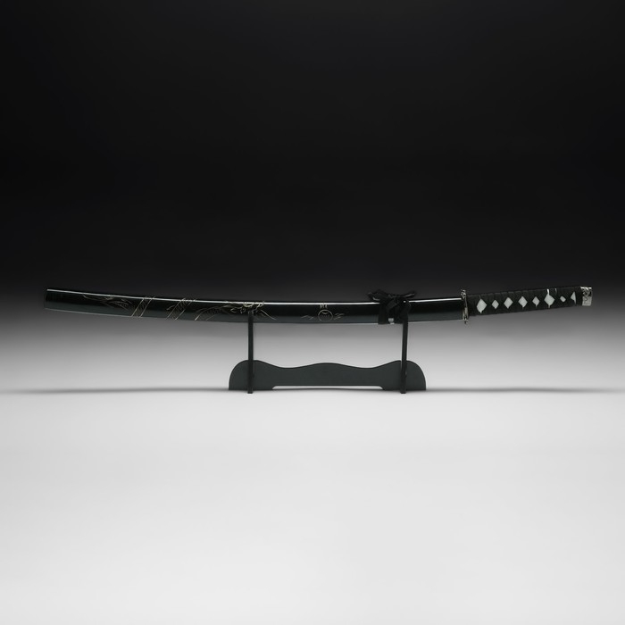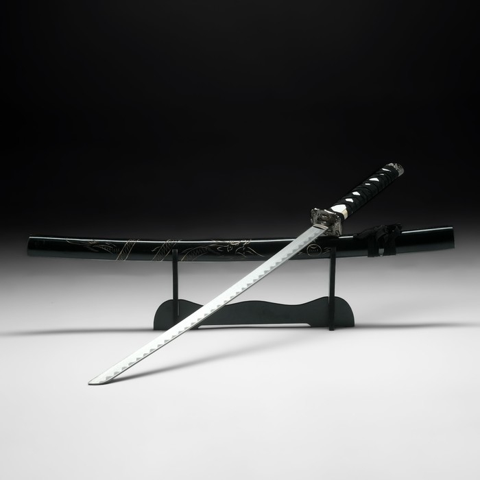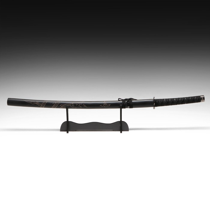 Сувенирное оружие «Катана на подставке», чёрные ножны с резным драконом, рукоять микс 100см