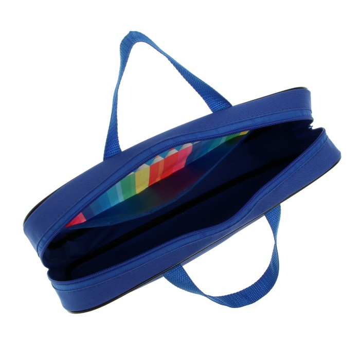 Папка текстильная на молнии с ручками, формат A4+. Размер 270 х 70 х 350 мм. Материал: износо-морозостойкий водоотталкивающий 100% полиэстер. Предназначена для транспортировки учебных принадлежностей, документов и различных аксессуаров. Имеет одно большое отделение с расширением и карманом внутри, застежка на молнии с мягким ходом. Для комфортной переноски ручки папки выполнены из прочной стропы