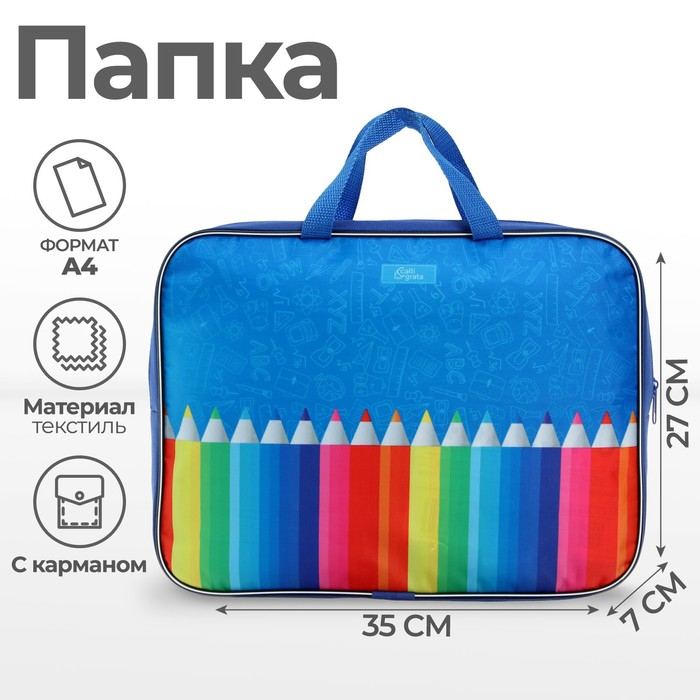 Папка с ручками текстильная А4, 350 х 270 х 70 мм, Calligrata "Карандаши"