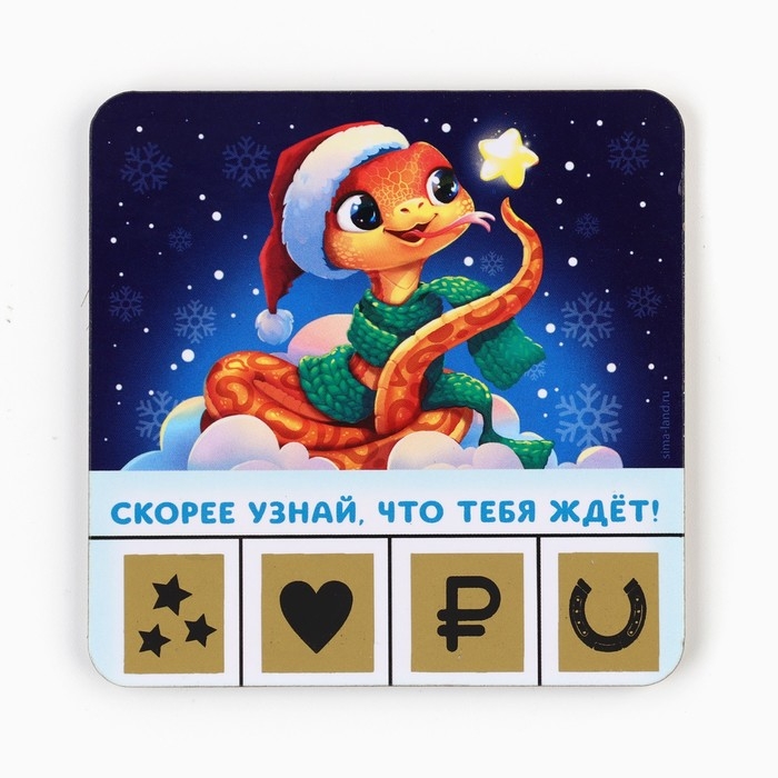Магнит новогодний дерево со скретч-слоем «Новый год: Змейка», 8 х 8 см