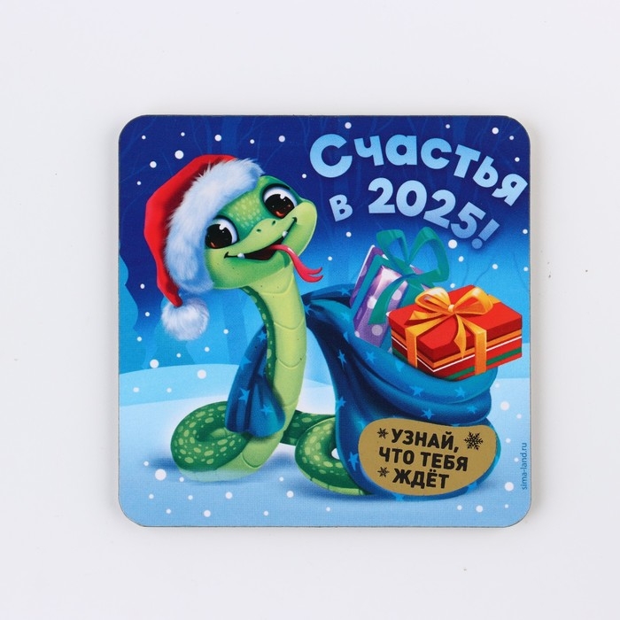 Магнит новогодний дерево со скретч-слоем «Новый год: Счастья в 2025», 8 х 8 см