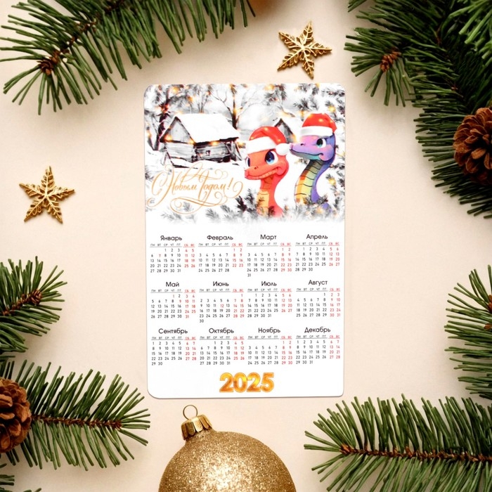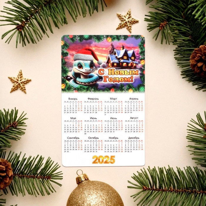 Набор новогодних, змея, магнитов-календарей "С Новым Годом!" символ года, 11 х 9 см