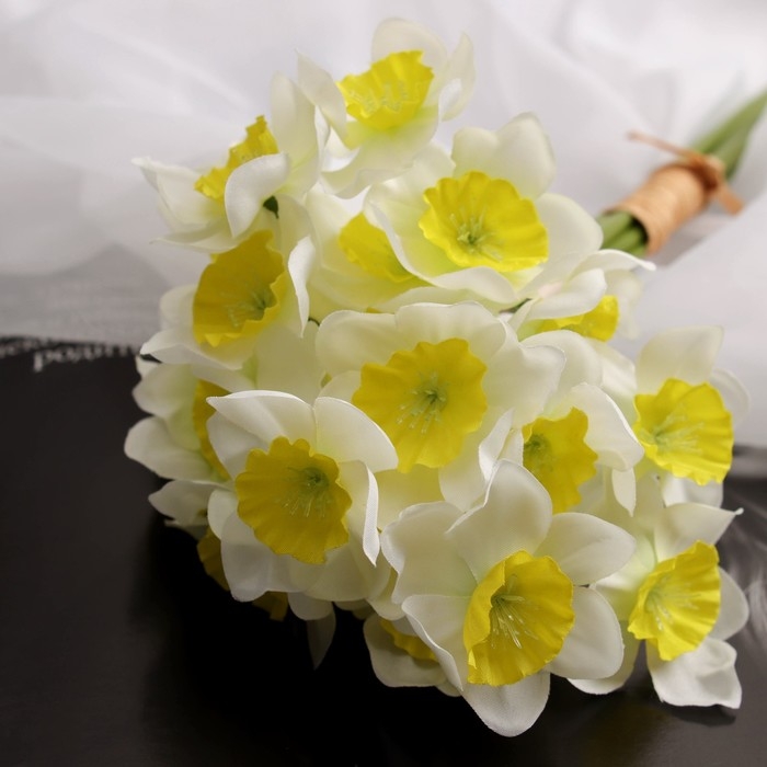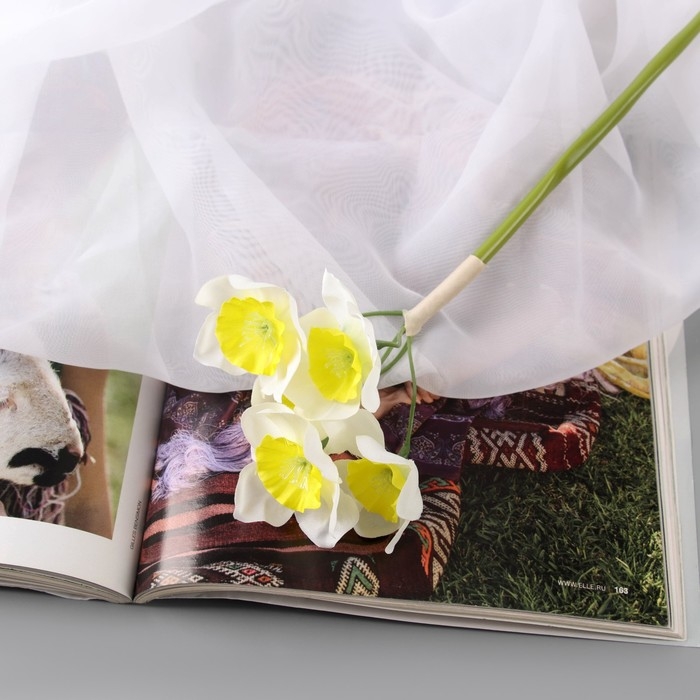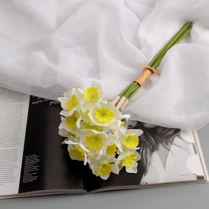 Цветы искусственные "Нарцисс люкс"диам.цветка-5см (6 штук в связке) 30 см, бело-жёлтый