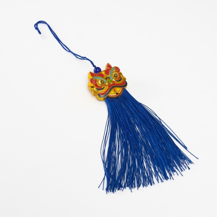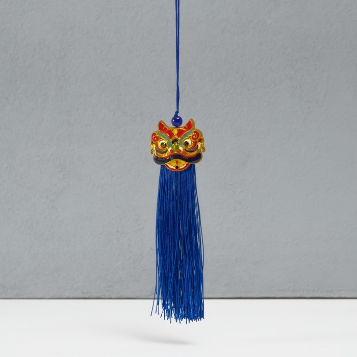 Подвеска текстиль, пластик "Китайский лев" синяя 2х4х14 см