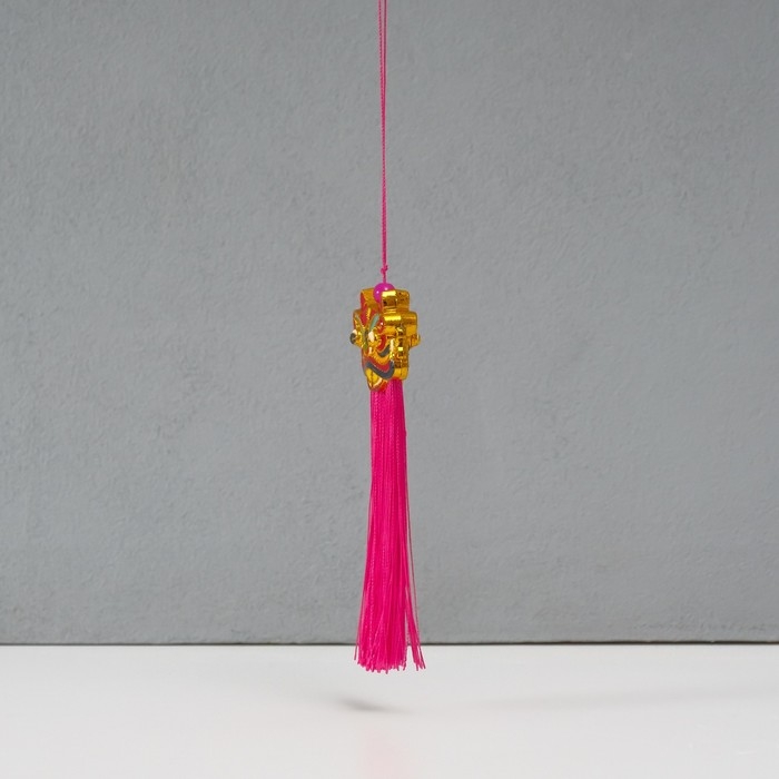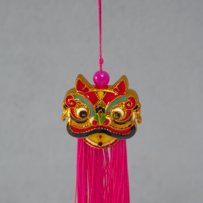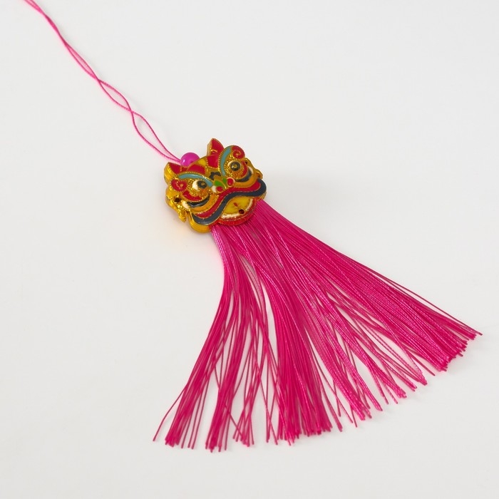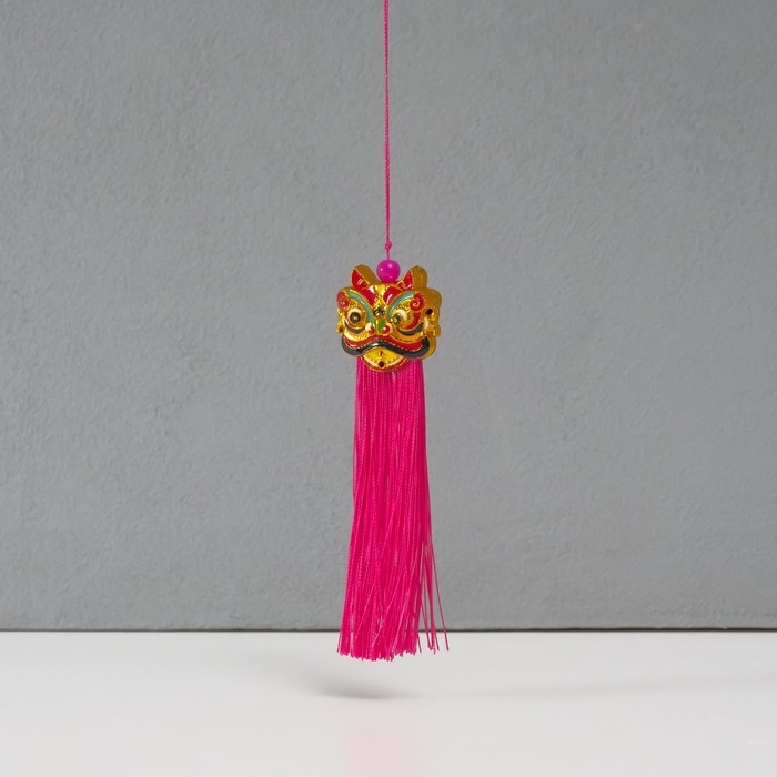 Подвеска текстиль, пластик "Китайский лев" ярко-розовая 2х4х14 см