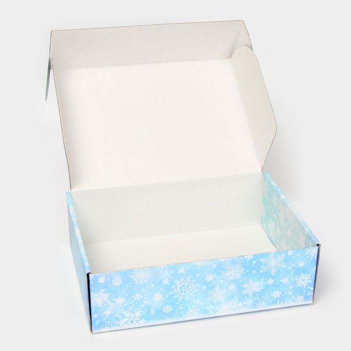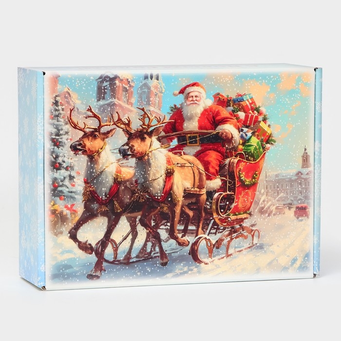 Складная новогодняя коробка размером 30,7 × 22 × 9,5 см — идеальный выбор для упаковки подарков и сувениров.