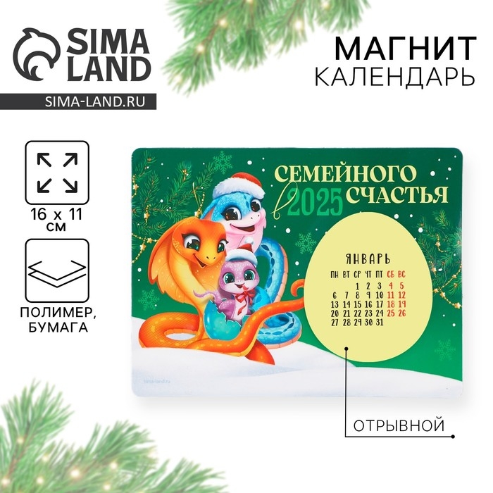 Календарь 2025 новогодний с отрывным блоком «Новый год: Семейного счастья», 16 х 11 см