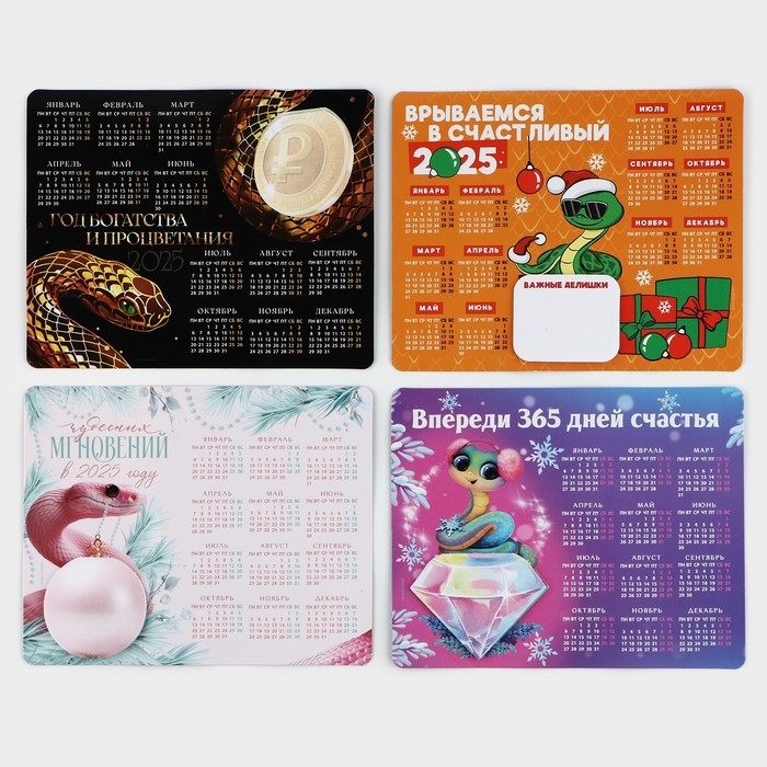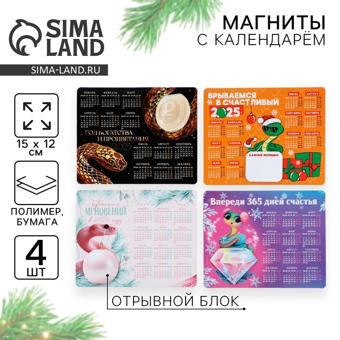 Новогодний магнит Календарь 2025 с блоком «Новый год: Новогодний МИКС», 15 х 12 см, новогодняя серия
