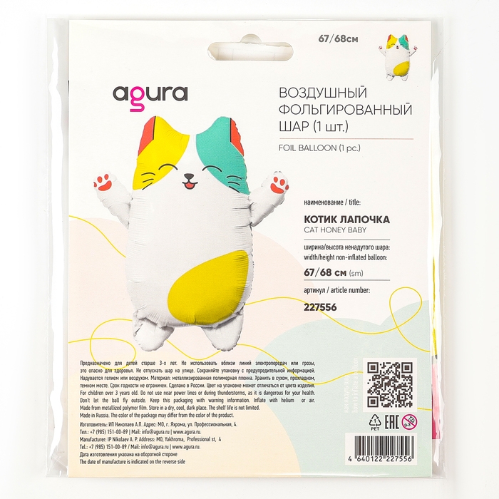 Шар фольгированный 27" «Котик лапочка», фигура