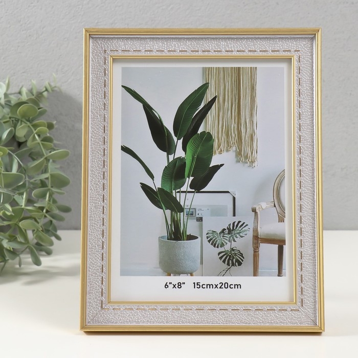 Фоторамка пластик 15х20 см "Фактура под кожу со стежками" серебро с золотом 1,5х18,6х23,6 см 10494