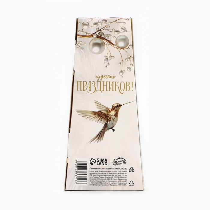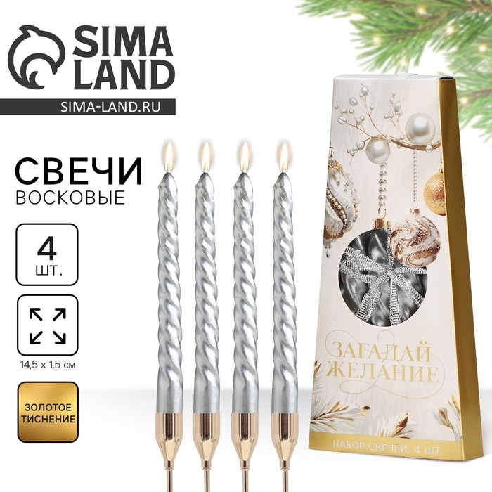 Свечи витые новогодняе «Новый год: Чудесных праздников», 4 шт, 6,8 х 1