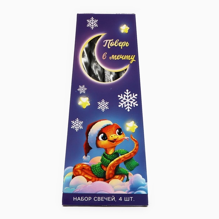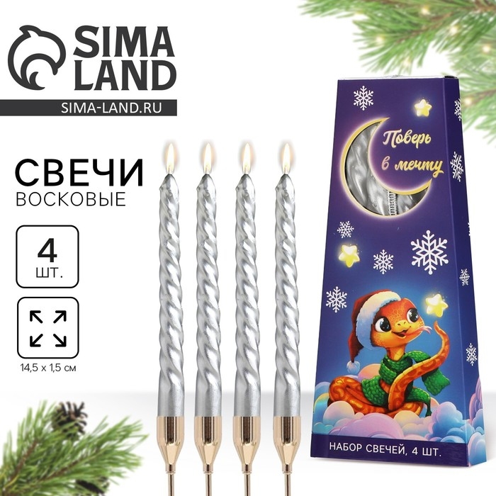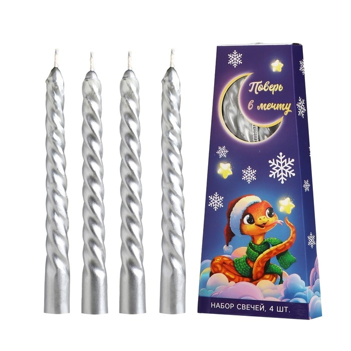 Свечи витые новогодняе «Новый год: Поверь в мечту», 4 шт, 6,8 х 1