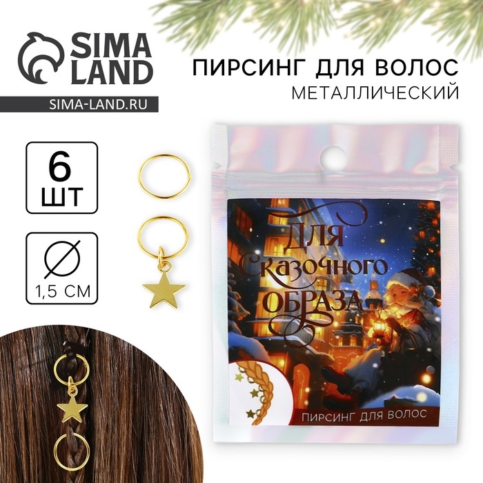 Пирсинг для волос новогодний «Для сказочного образа» на Новый год, 6 шт