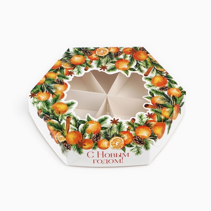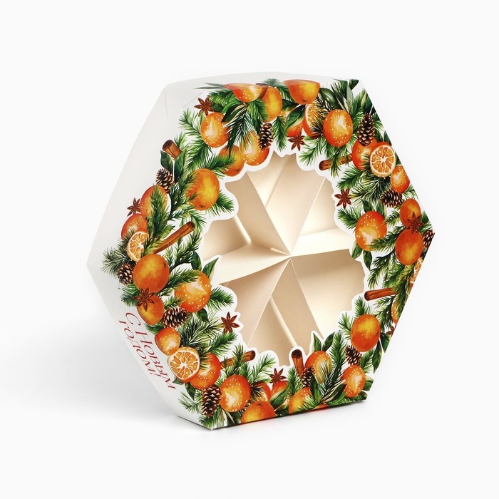 Коробка складная «Мандаринчики», 23 х 23х 4 см, Новый год