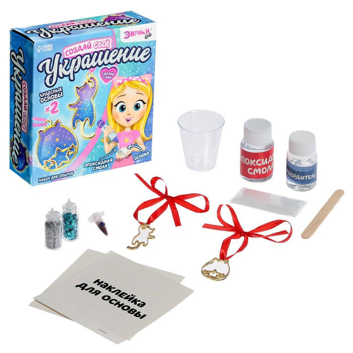 Набор для опытов с эпоксидной смолой «Создай своё украшение: Котики», 2 основы