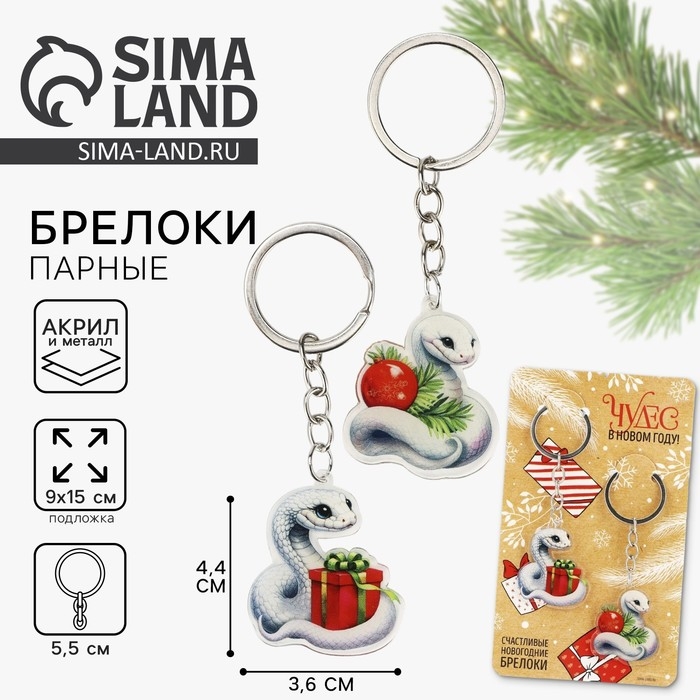 Брелок новогодний, для ключей, новогодний, парный «Чудес в новом году» набор 2 шт