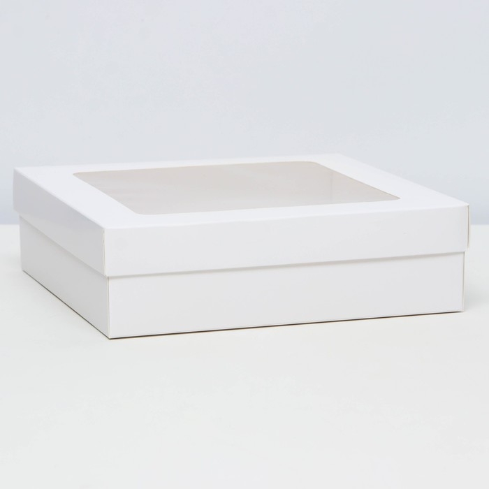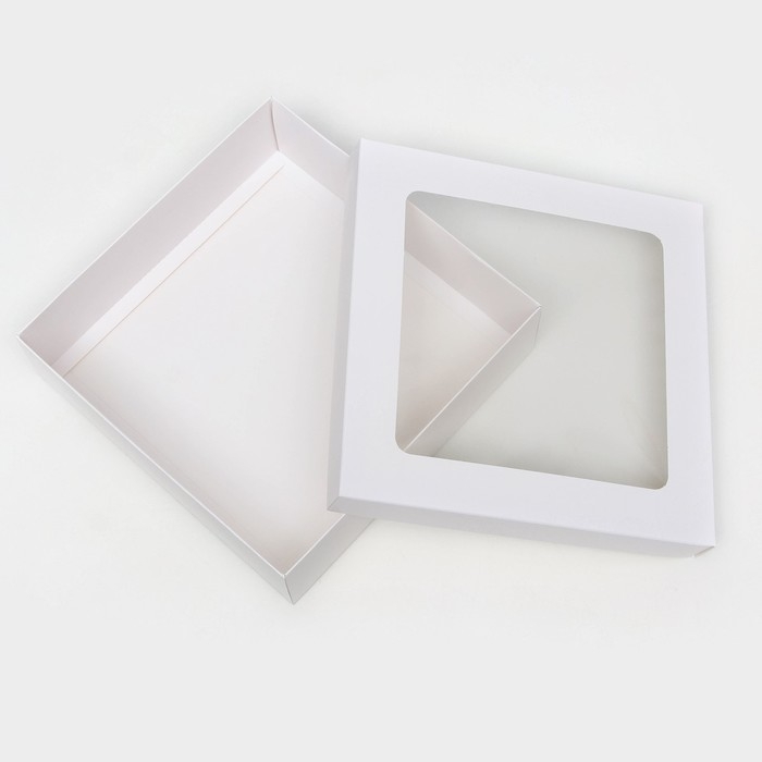 Коробка складная, крышка-дно,с окном, белая, 23 х 23 х 6,5 см