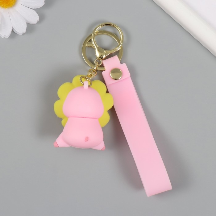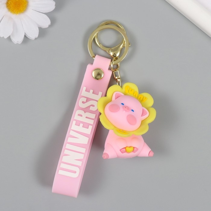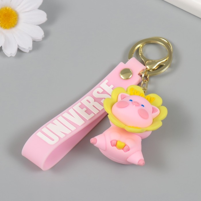 Брелок резина с карабином, ремешком "Свинка в цветочке" цветочек крутится 3,5х4,2х5,5 см
