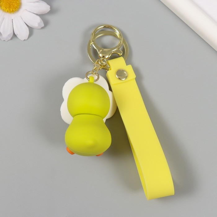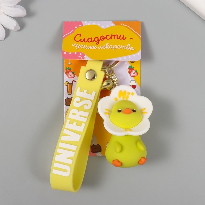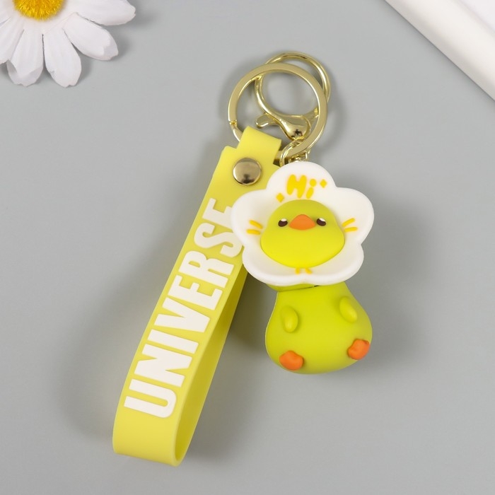 Брелок резина с карабином, ремешком "Цыплёнок в цветочке" цветочек крутится 3,5х4х6,2 см