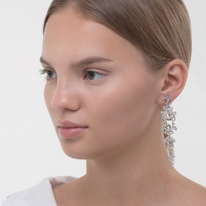 Клипсы «Ажур» капли с завитками, цвет белый в серебре