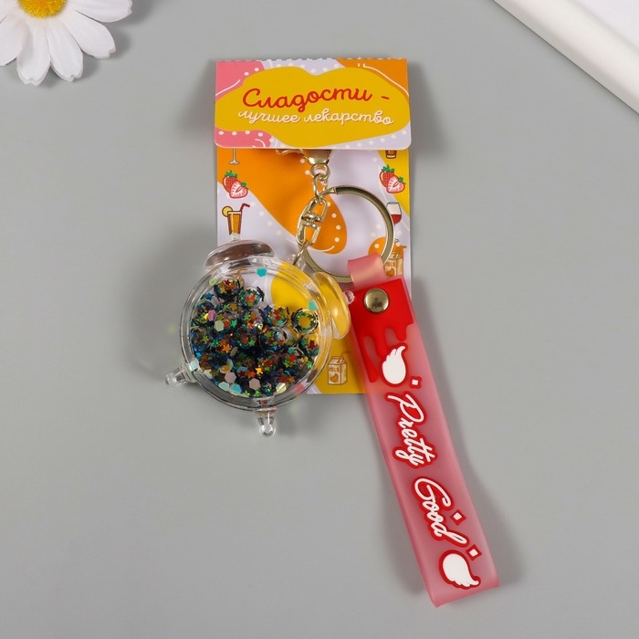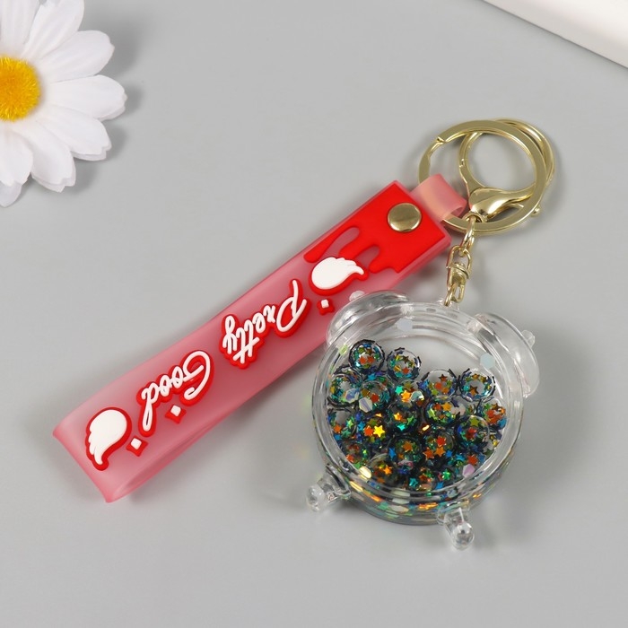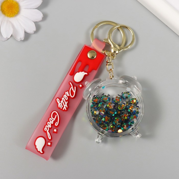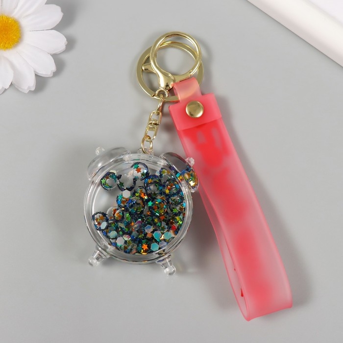 Брелок пластик с карабином, ремешком "Часики" водный с глиттером 5х5х2 см