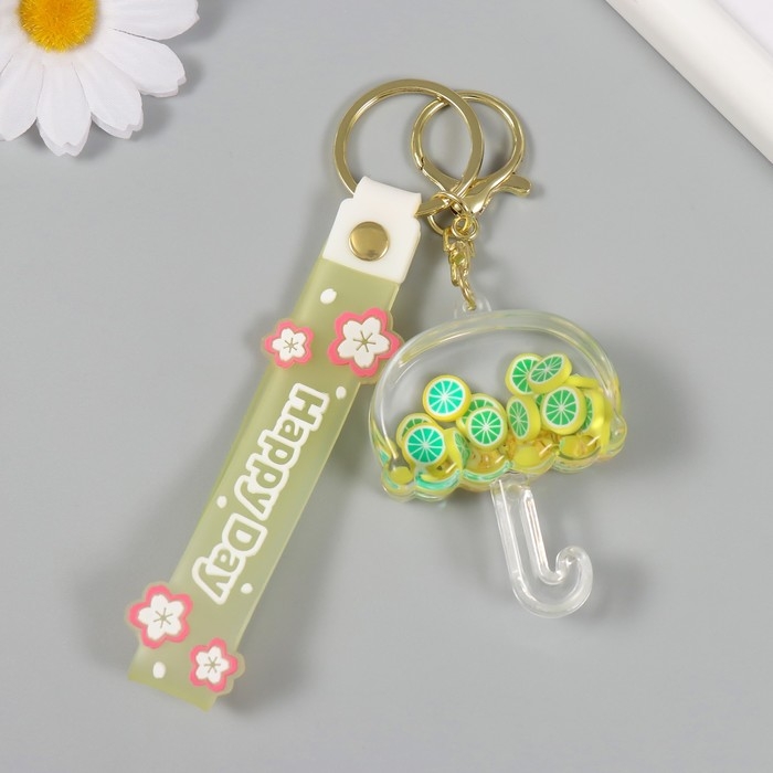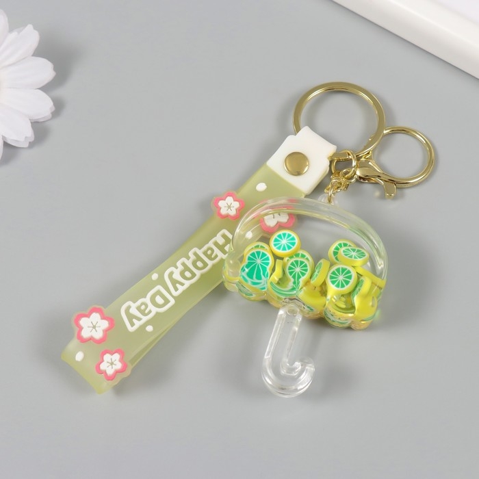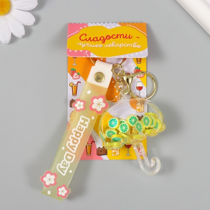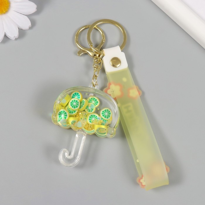 Брелок пластик с карабином, ремешком "Зонтик с лимонами" водный с декором 6х5х2 см