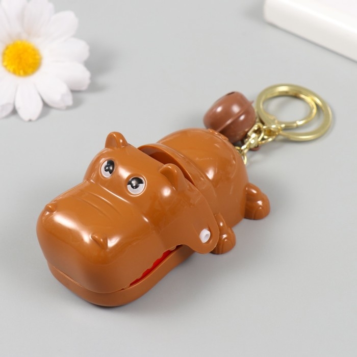 Брелок пластик с карабином "Бегемот-зубастик" закрывается при нажатии на зуб 5,5х7,5х4,5 см 104989