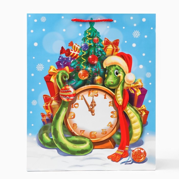 Новый год. Пакет подарочный "Куранты", 26 х 32 х 12 см.