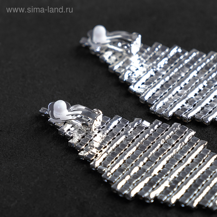 Клипсы «Грейс» диагональ бусин, цвет белый в чернёном серебре