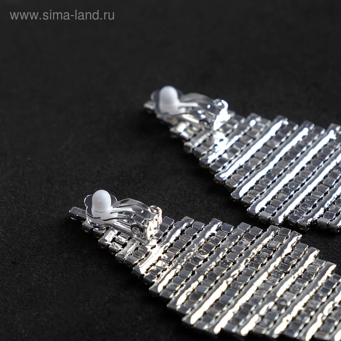 Клипсы «Грейс» диагональ бусин, цвет белый в чернёном серебре