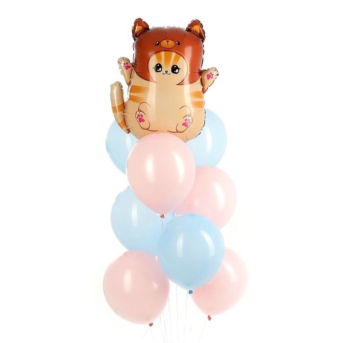 Набор воздушных шаров «Котик в шапке», фольга, латекс, 9 шт.