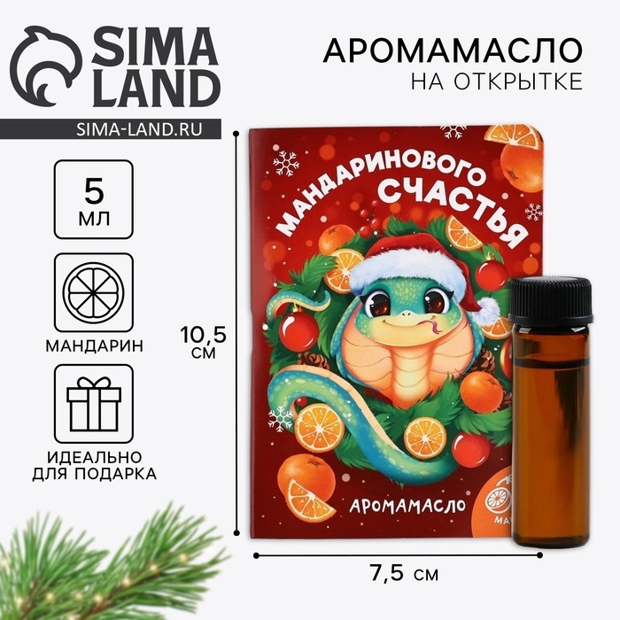 Аромамасло новогоднее на открытке «Новый год: Пусть мечты сбываются», аромат мандарин, 5 мл