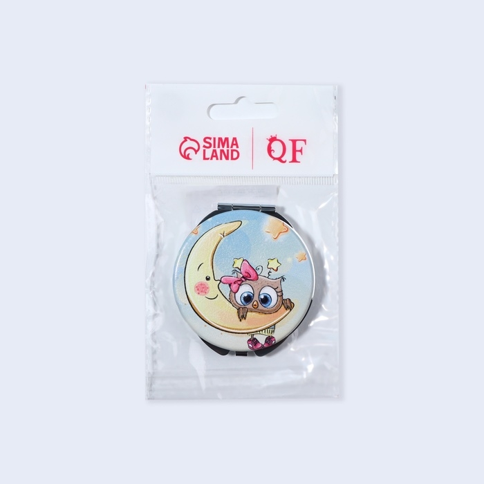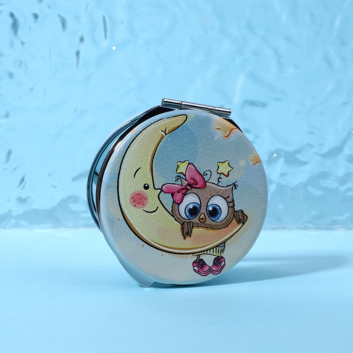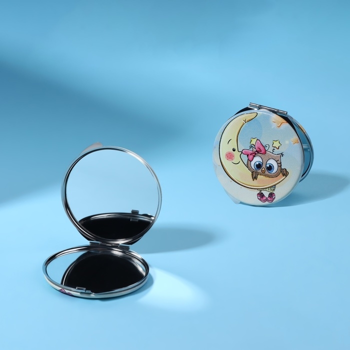 Зеркало складное «Совята», d = 6 см, с увеличением, искусственная кожа, цвет голубой