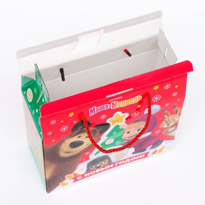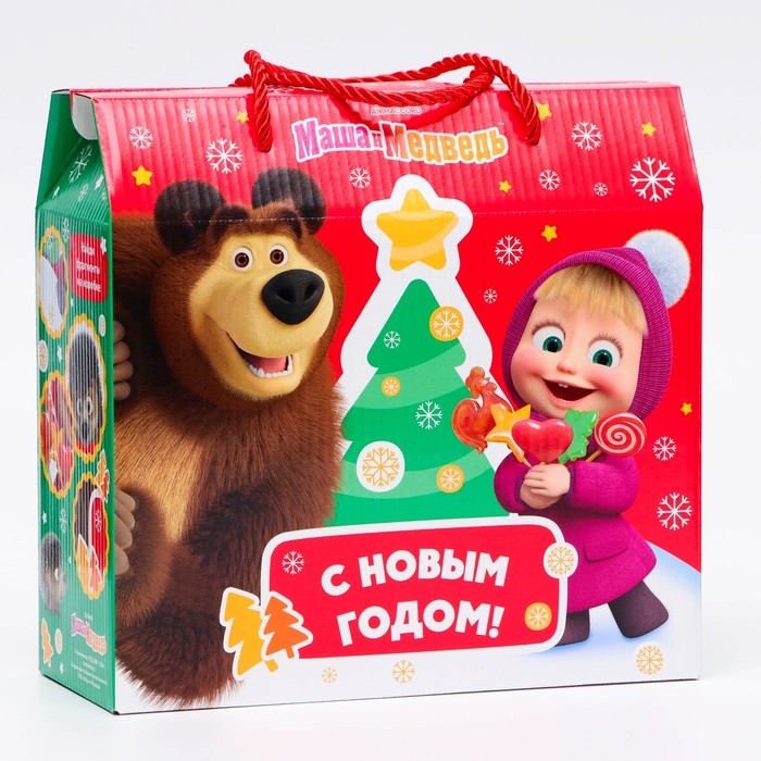 Новый год. Подарочная коробка новогодняя Маша и Медведь МУЛЬТФИЛЬМ ПО QR-КОДУ! 23 х 10 х 22 см.