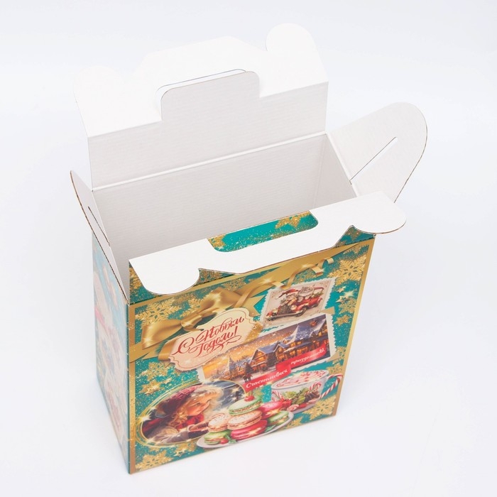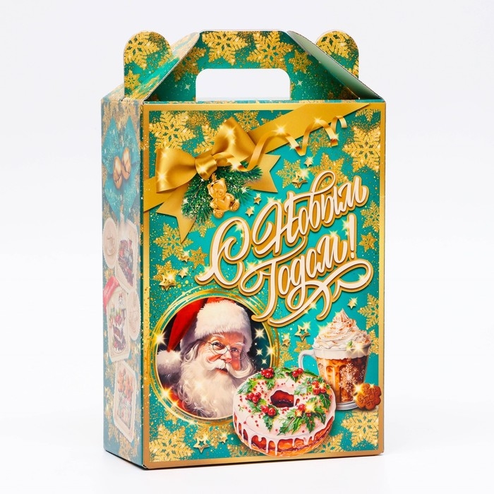 Коробка выполнена из качественных материалов, которые обеспечивают сохранность содержимого. Она имеет яркий и красочный дизайн, который отражает атмосферу Нового года.