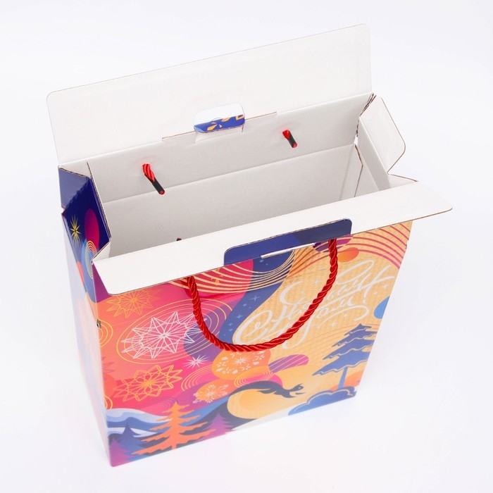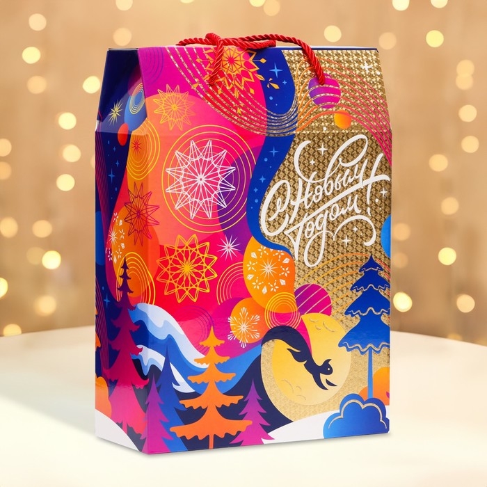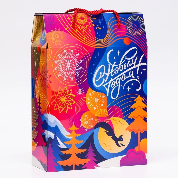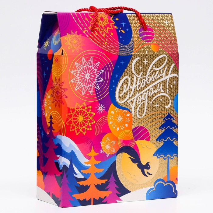 Коробка выполнена из качественных материалов, которые обеспечивают сохранность содержимого. Она имеет яркий и красочный дизайн, который отражает атмосферу Нового года.