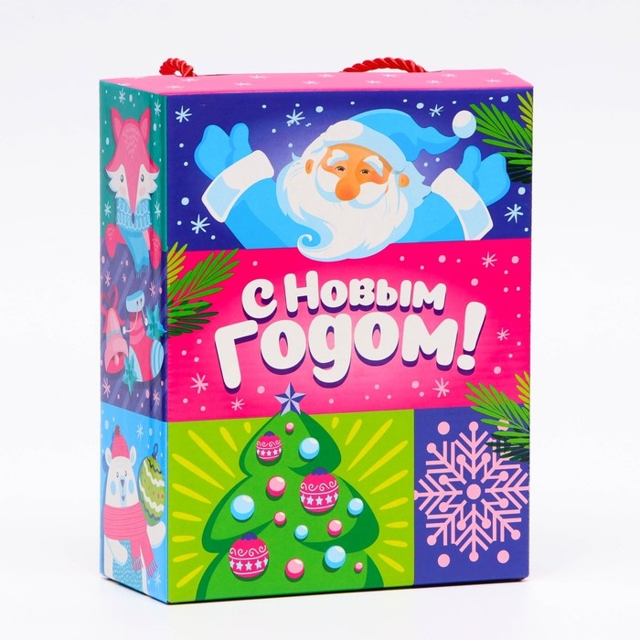 Коробка выполнена из качественных материалов, которые обеспечивают сохранность содержимого. Она имеет яркий и красочный дизайн, который отражает атмосферу Нового года.