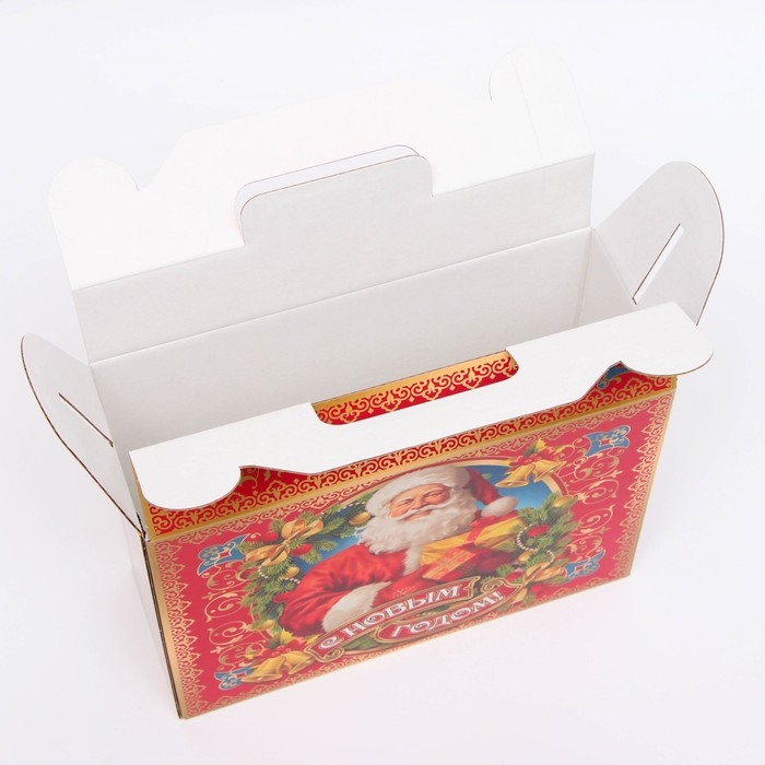 Коробка выполнена из качественных материалов, которые обеспечивают сохранность содержимого. Она имеет яркий и красочный дизайн, который отражает атмосферу Нового года.