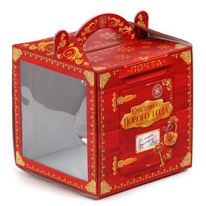 Коробка кондитерская с окном, сундук, «Новогодняя почта», 20 х 20 х 20 см,