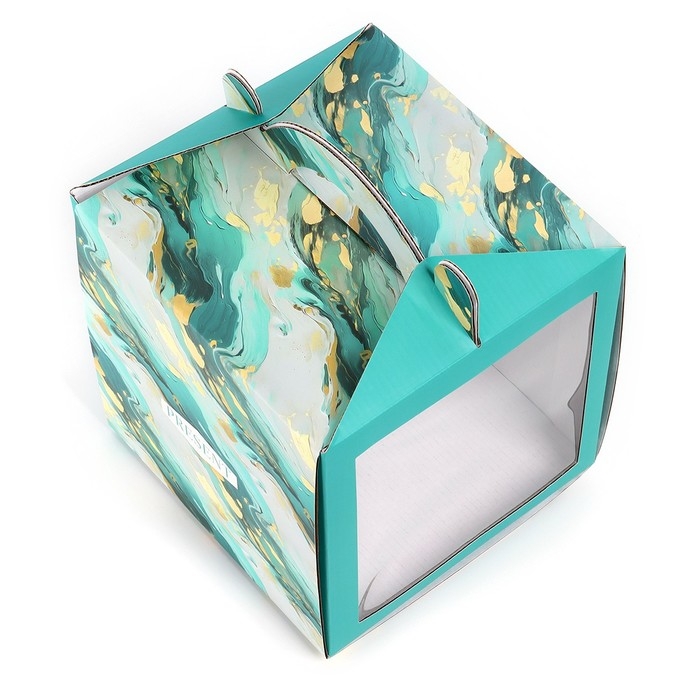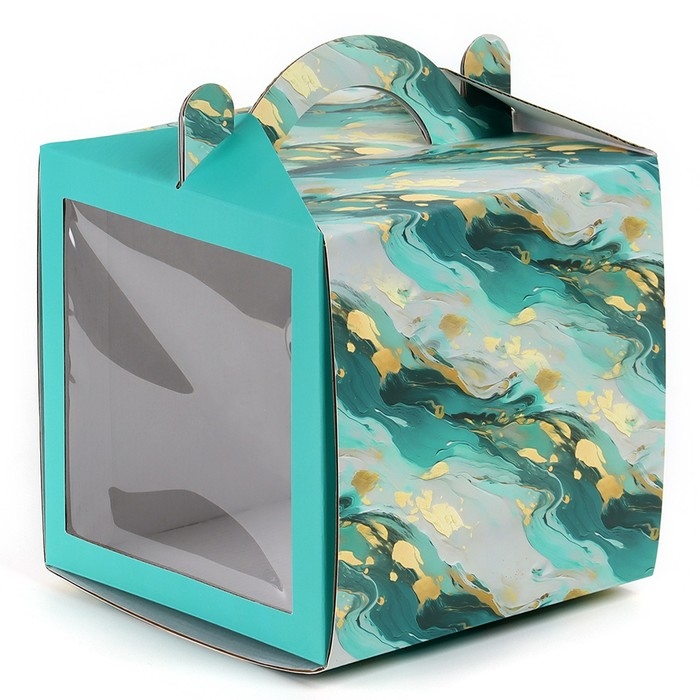 Коробка кондитерская с окном, сундук, «Мрамор», 20 х 20 х 20 см
