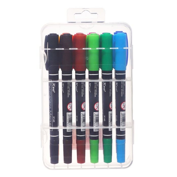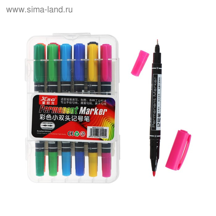 Набор маркеров перманентных 12 цветов двусторонних 0,5 мм / 1,0 мм в пластиковом пенале