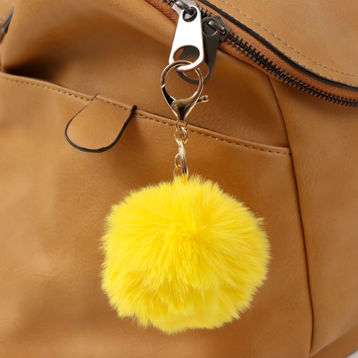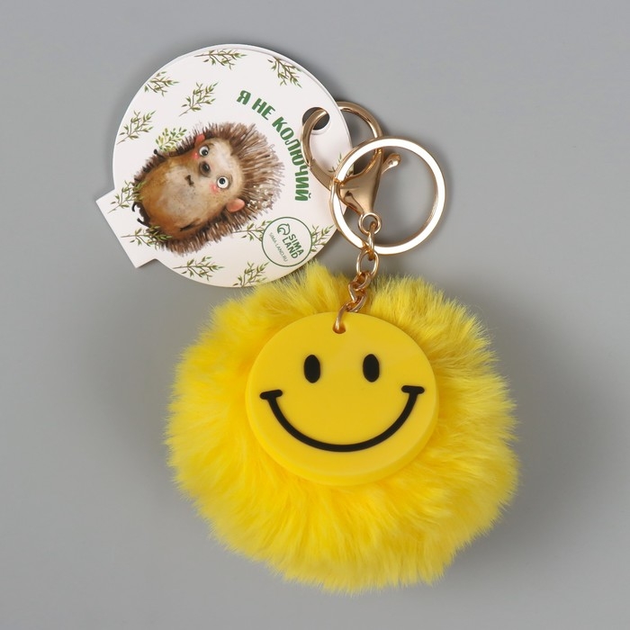 Пушистик на кольце с карабином "Смайл" жёлтый 8х8 см
